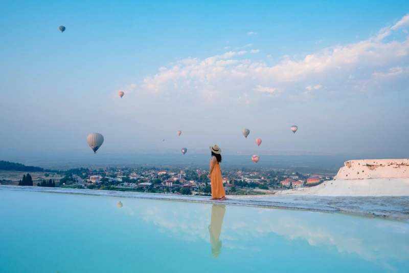 After breakfast, you'll be picked up from your hotel for a full-day excursion to Pamukkale and Hierapolis. In Pamukkale, witness the breathtaking Cotton Cliffs, a remarkable natural formation created by mineral-rich thermal waters. You'll also explore the fascinating ancient city of Hierapolis, where you'll visit its impressive basilica, theater, and well-preserved Roman Baths. After the tour, you'll be transferred back to your hotel.