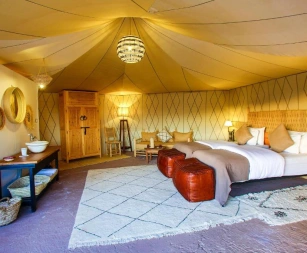 Once you arrive, embark on an unforgettable 4x4 adventure across the vast sand dunes, culminating in a stunning sunset as you make your way to the desert camp in Merzouga for an authentic Sahara experience.