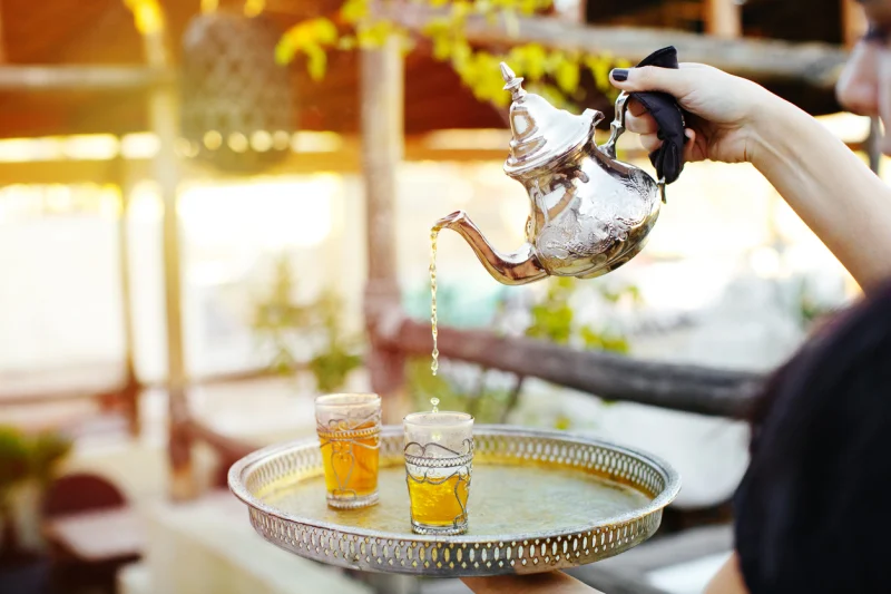 Pause at Café Maure on the scenic Bouregreg River to enjoy a Moroccan mint tea (optional) with local treats like Kaab Ghazal and Ghariba. After the tour, depart Rabat and head north to the picturesque blue city of Chefchaouen.