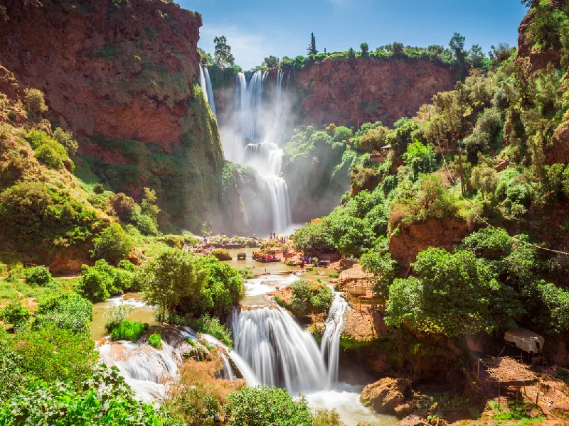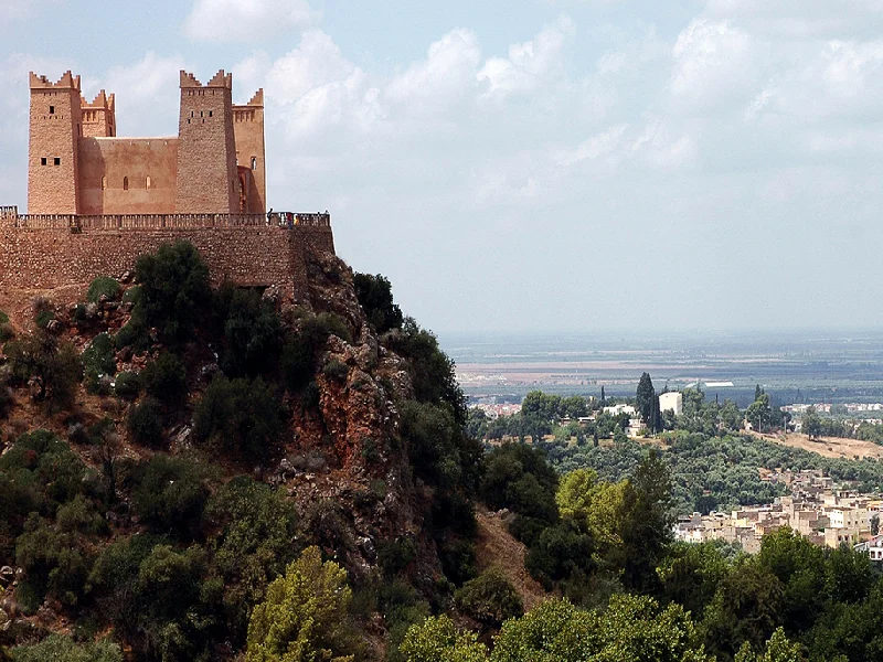 Clear water flows from the rocks and creates cascading waterfalls that feed the green surroundings. The impressive 17th-century Kasbah, built by Sultan Moulay Ismail, stands above the spring and gives breathtaking views of Tadla Plain's patchwork of olive groves and orchards.