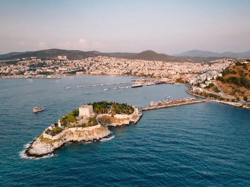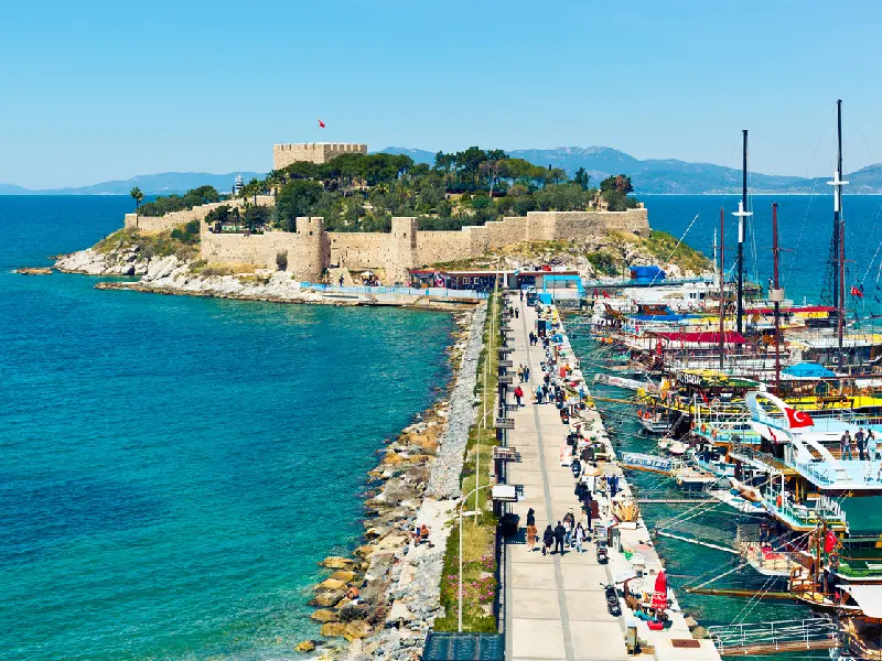 Kusadasi sparkles along Turkey's western shoreline, showcasing the Aegean region's stunning turquoise waters and rich heritage.