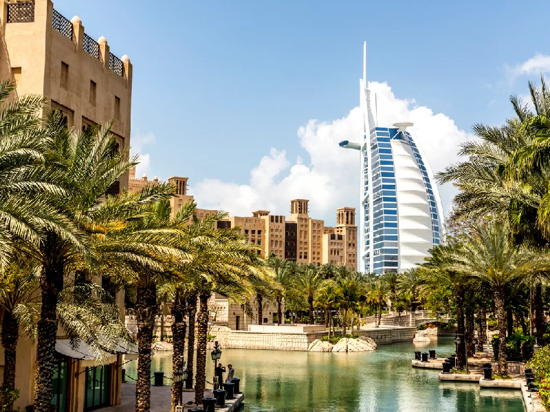 The stunning architecture of Souk Madinat Jumeirah sets the stage for activities that blend Dubai's traditional charm with modern luxury.