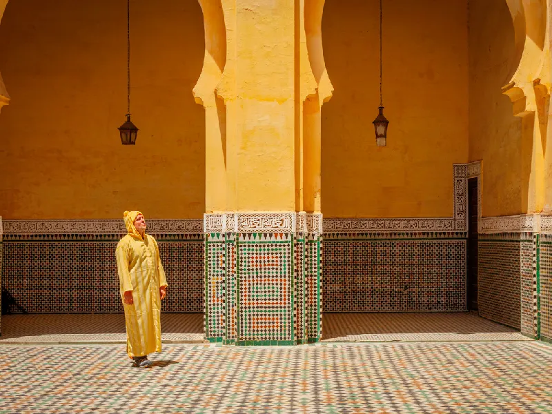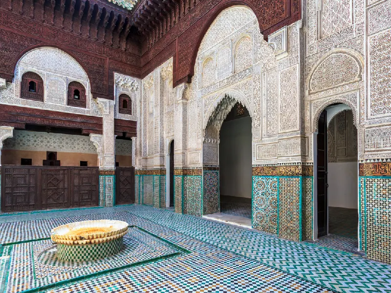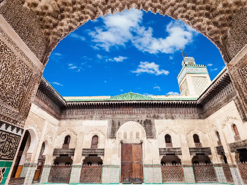 The 670-year-old Bou Inania Madrasa and the ancient Roman ruins of Volubilis are the most important cultural and archeological sites in the region. Located just 60 kilometers from Fez, Meknes showcases Morocco’s imperial grandeur and is a highlight often featured in Morocco travel packages.