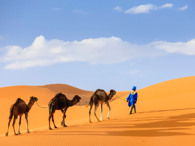 Ouarzazate, Morocco makes an ideal base for Sahara expeditions. Local tour operators run trips lasting from one day to several days. Popular destinations include the Draa Valley, Road of a Thousand Kasbahs, and the golden dunes of Merzouga. Longer tours typically include camel rides across dunes, nights in desert camps, traditional Moroccan food, and Berber music under starlit skies.